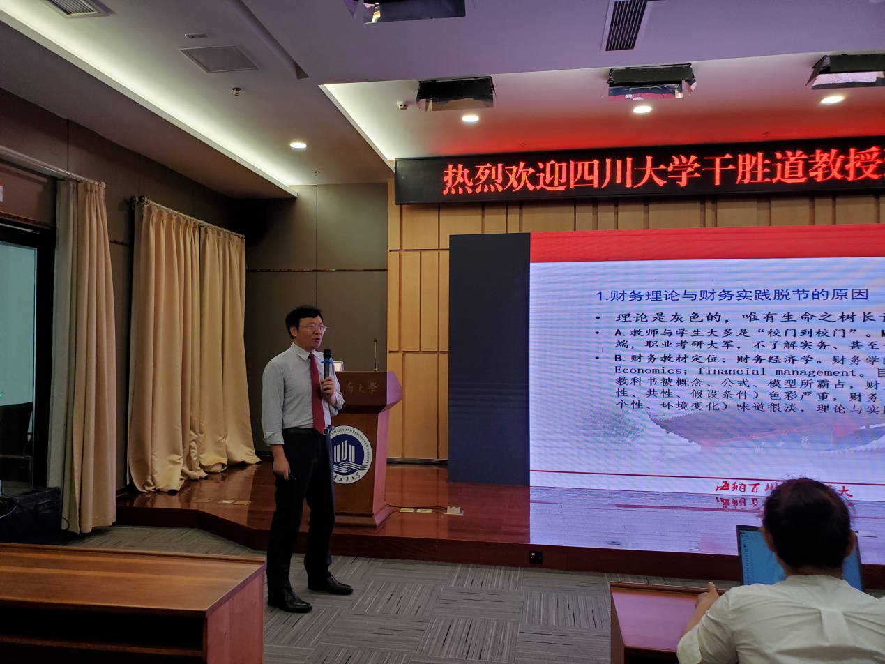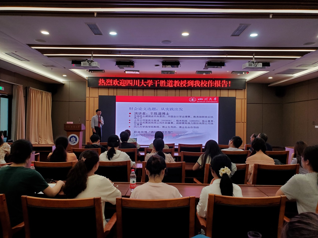 2021年7月9日下午,365英国上市公司第二十九期会计名家大讲堂在图书馆第一会议室进行,四川大学干胜道教授应邀为我院师生做了题为“财会论文选题:从实际出发”的专题讲座。