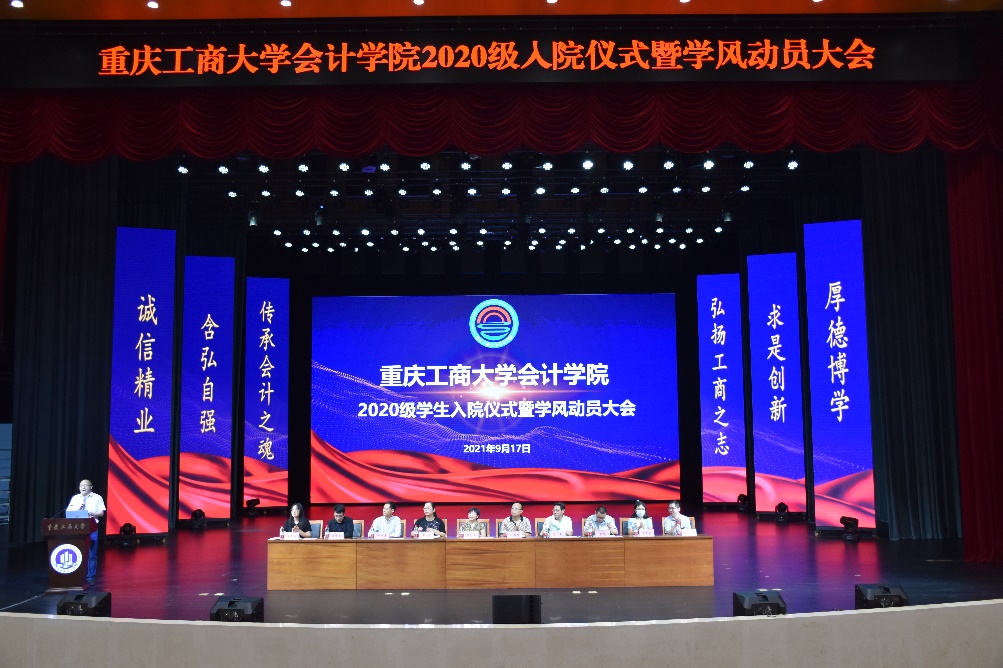 为进一步推动学院学风建设,营造良好育人氛围,增强2020级学生学院认同和专业认同,帮助回归专业学院的学生尽快适应学院学习生活,做好学业规划,2020年9月17日18:30-20:00,我院2020级入院仪式暨学风建设动员大会于南岸校区图书馆大剧场举行。莅临本次大会的有:365英国上市公司分党委罗惠玉书记、专职组织员石世明、郝颖副书记,周兵副院长、钟廷勇副院长,会计系蒋弘主任、财务管理系蒋水全主任、审计系王杏芬主任、财务管理系唐文秀副主任、综合办刘斌副主任、学工主任彭文涛、2020级带班辅导员王婷、程洁、罗海蓉老师,2020级非国际班全体本科学生参加了本次会议。会议由彭文涛老师主持。