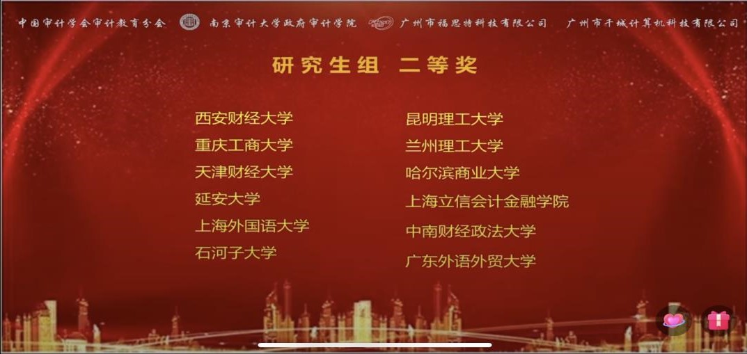 在各级领导大力支持、指导教师石恒贵、李晓羽和王杏芬等的悉心指导下,经过奋力拼搏,365英国上市公司2019级李昌平、谢媛、周莹组成的本科代表队和2021级审计专硕徐佳豪、周涵非、邓帆组成的研究生代表队,从300多支队伍中脱颖而出,双双斩获全国二等奖。